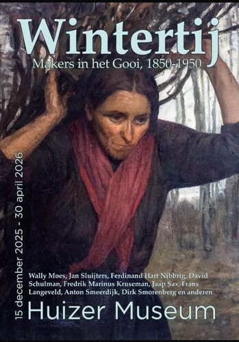 Het is deze winter te zien in het Huizer Museum in de tentoonstelling Wintertij. Samen met andere winterse taferelen uit de streek. Dat is niet altijd met ijspret. Neem de 'takkendraagster' van Wally Moes. Zij torst een grote bundel takken op haar rug: brandhout voor een open vuur in een schamele hut.