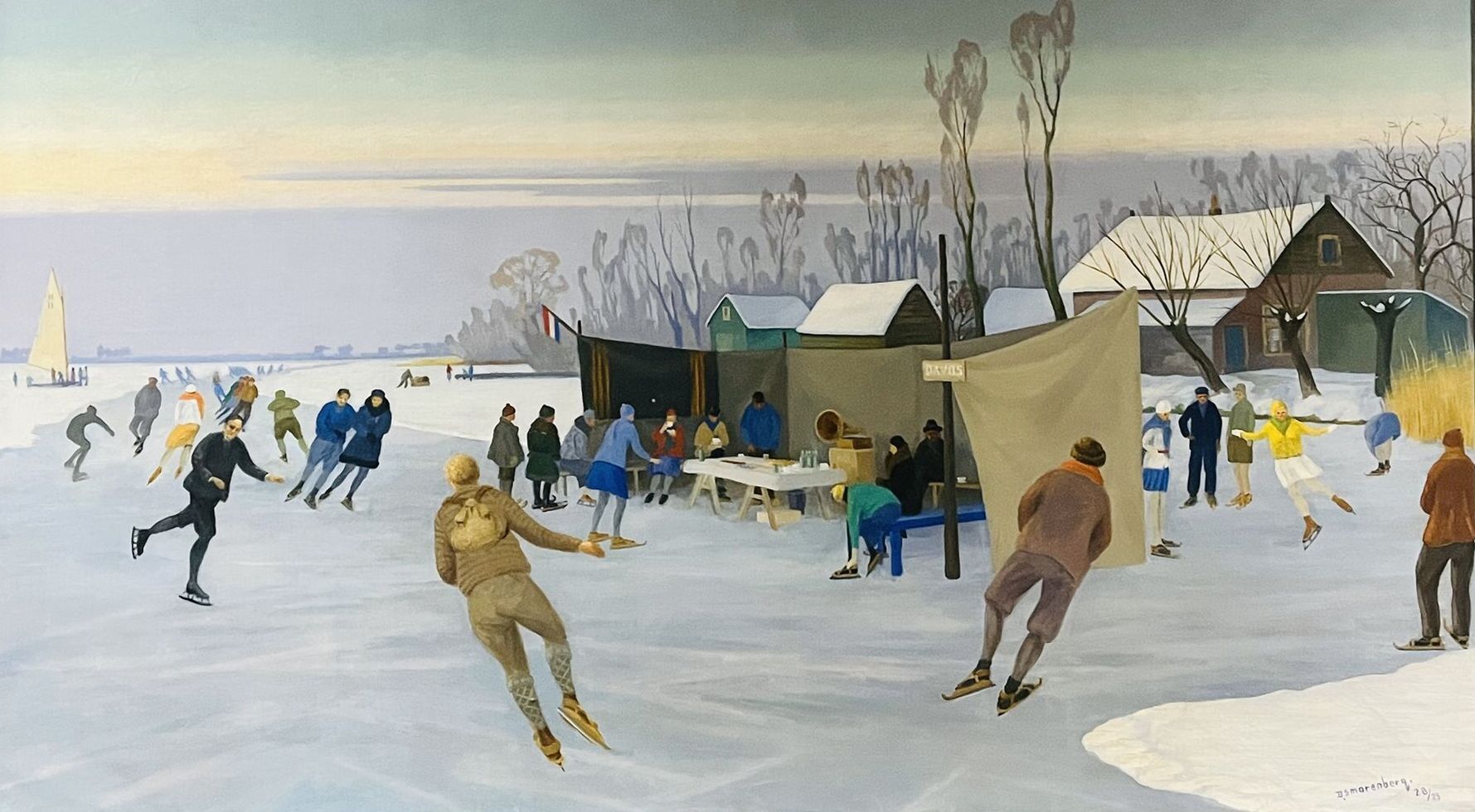 Zo'n schilderij van Dirk Smorenberg (1883-1960), daar kan ik helemaal bij wegdromen. Schaatsers op een plas in 't Gooi, geschilderd in 1929.